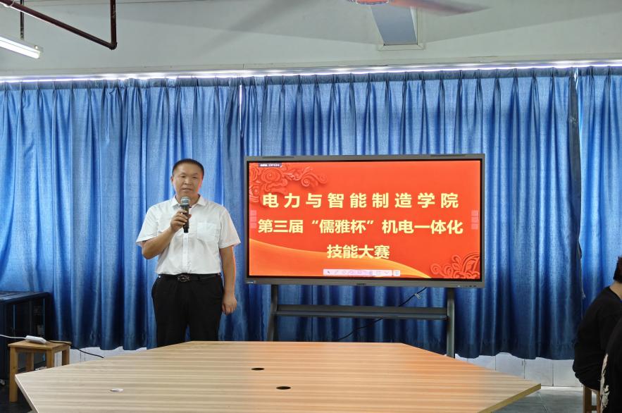 學院黨總支書記、副院長褚玉峰致開幕詞,他表示通過舉辦本屆”儒雅杯”機電一體化技能大賽,積極探索產(chǎn)教融合人才培養(yǎng)新模式,全面提升電力、電氣、智控類等專業(yè)學生職業(yè)競爭力,落實“以賽促學、以賽促教、學賽結(jié)合”,大力弘揚勞模精神、勞動精神、工匠精神,為中國式現(xiàn)代化建設提供有力的技能人才支撐。