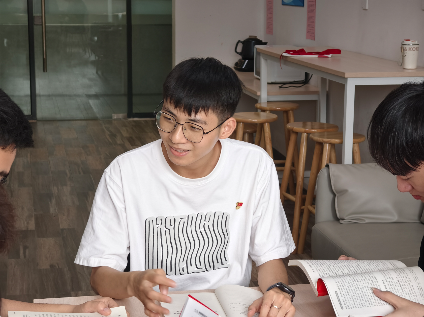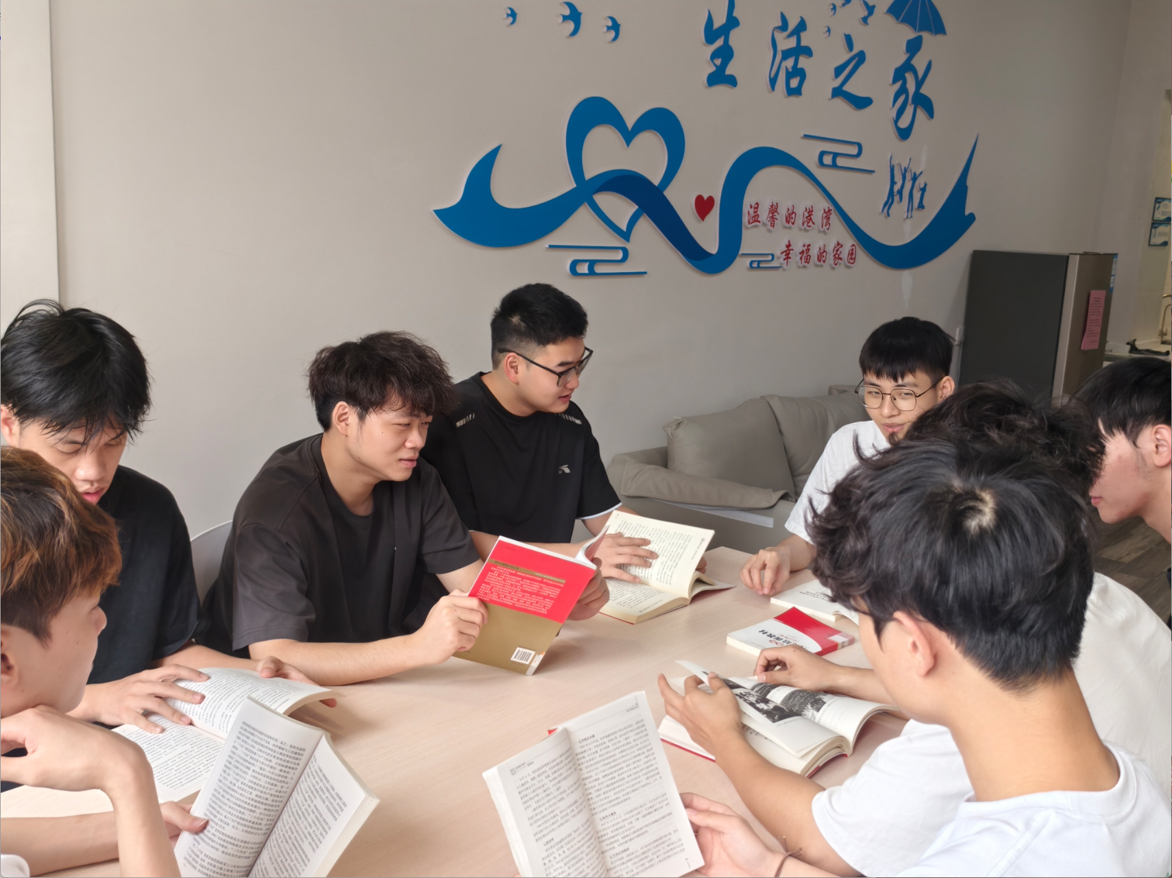 窗外雨聲淅瀝,室內(nèi)書香氤氳。在學(xué)生社區(qū)里一場(chǎng)別開生面的讀書分享會(huì)正火熱進(jìn)行,教師黨員吳世濤帶領(lǐng)著五位學(xué)生黨員和積極分子,共同徜徉于知識(shí)與信仰的海洋,其中,他作為思想引領(lǐng)者的角色尤為亮眼。
