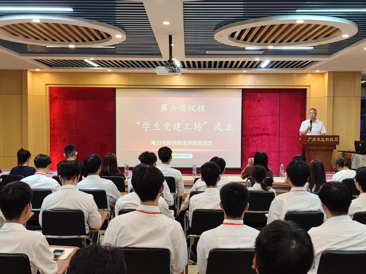 會上,學(xué)院黨總支書記褚玉峰教授宣布“學(xué)生黨建工坊”成立并致辭,他講到成立“學(xué)生黨建工坊”是電力與智能制造學(xué)院加強(qiáng)和改進(jìn)新時(shí)代大學(xué)生思想政治教育工作,提升學(xué)生黨建工作質(zhì)量的重要舉措,是打造學(xué)生黨支部特色黨建品牌的需要,對幫助學(xué)生黨員和入黨積極分子深入學(xué)習(xí)黨的創(chuàng)新理論、路線方針政策、黨史國史,深刻理解習(xí)近平新時(shí)代中國特色社會主義思想具有重要意義?!皩W(xué)生黨建工坊”可以成為連接校內(nèi)思政課教師、黨務(wù)工作者、專業(yè)教師、校外專家學(xué)者的橋梁,引入更豐富的育人力量;可以發(fā)揮朋輩效應(yīng),為學(xué)生黨員、入黨積極分子、普通學(xué)生之間,提供深入交流空間,分享學(xué)習(xí)心得、成長困惑、實(shí)踐經(jīng)驗(yàn),營造濃厚的“儒雅電力人”文化育人氛圍,潛移默化地影響廣大學(xué)生。最后,希望我們齊心協(xié)力,把“學(xué)生黨建工坊”打造成為我們學(xué)院學(xué)生黨建工作的“紅色熔爐”和“先鋒營地”。