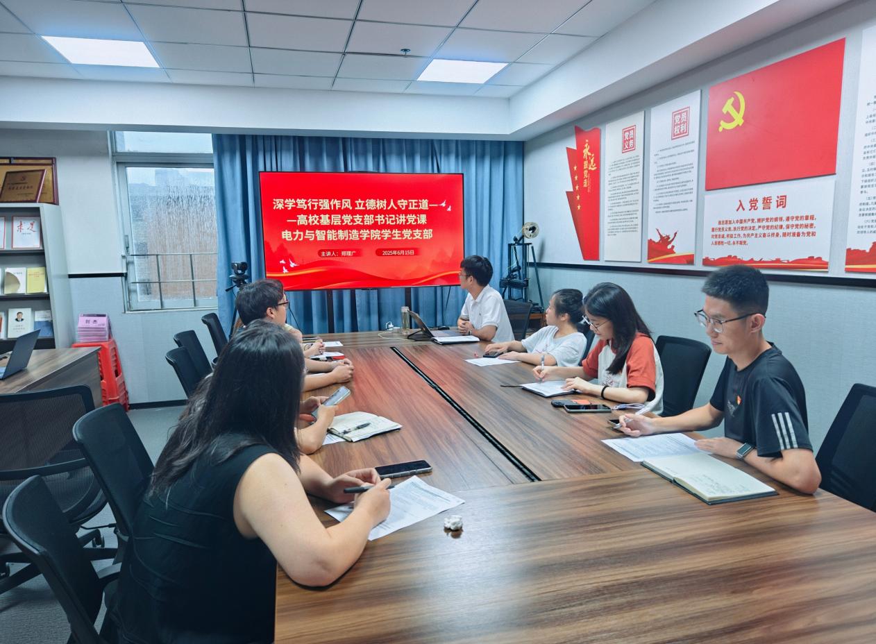 6月16日下午在西一514會議室,電力與智能制造學(xué)院學(xué)生黨支部書記鄭理廣老師為學(xué)生黨支部全體黨員上了題目為“深學(xué)篤行強(qiáng)作風(fēng),立德樹人守正道”的黨課。