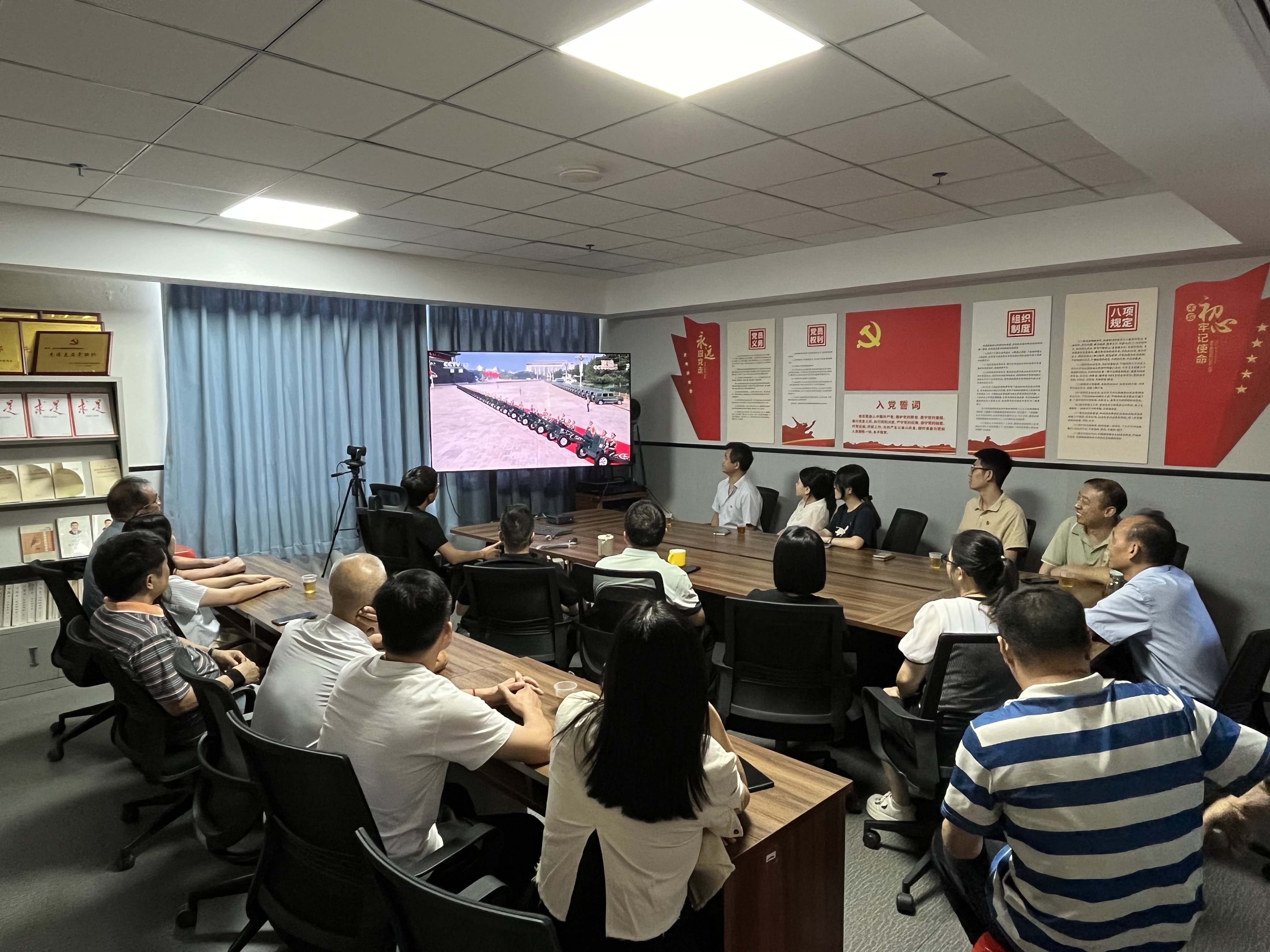 上午9時(shí),大會(huì)正式開(kāi)始。與會(huì)同志認(rèn)真聆聽(tīng)習(xí)近平總書(shū)記重要講話,隨后,天安門(mén)廣場(chǎng)上80響禮炮響徹云霄,伴隨著雄壯的《義勇軍進(jìn)行曲》奏響,大家全體起立,齊唱中華人民共和國(guó)國(guó)歌,共同注視著鮮艷的五星紅旗冉冉升起。當(dāng)閱兵隊(duì)伍的空中護(hù)旗梯隊(duì)、徒步方隊(duì)、戰(zhàn)旗方隊(duì)、裝備方隊(duì)、空中梯隊(duì)依次通過(guò)天安門(mén)廣場(chǎng),集中觀看直播現(xiàn)場(chǎng)掌聲雷動(dòng),整齊的陣容、豪邁的氣勢(shì)、先進(jìn)的武器裝備讓大家倍感自豪、贊嘆不已,由衷為偉大祖國(guó)感到驕傲。