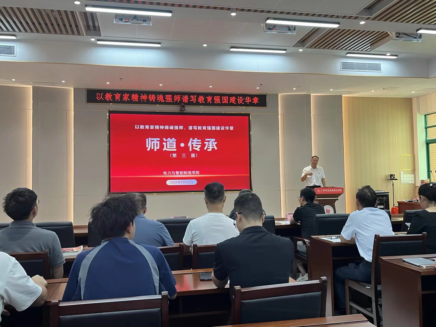 為了大力弘揚(yáng)教育家精神,譜寫教育強(qiáng)國建設(shè)華章,9月12日下午在圖書館104會議室,電力與智能制造學(xué)院開展了第三屆“師道?傳承”活動,活動由學(xué)院黨總支書記褚玉峰教授主持。