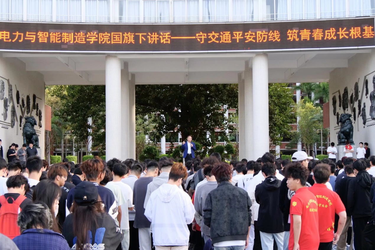 升旗儀式結(jié)束后,學(xué)院黨總支書記褚玉峰以“守交通平安防線,筑青春成長(zhǎng)根基”為主題,進(jìn)行了國(guó)旗下講話。