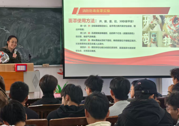 培訓(xùn)中,實(shí)訓(xùn)室管理員陳曉欣老師結(jié)合實(shí)訓(xùn)室日常管理實(shí)例,詳細(xì)解讀了儀器設(shè)備操作規(guī)程,實(shí)訓(xùn)室安全管理須知,重點(diǎn)強(qiáng)調(diào)了消防安全“預(yù)防為先、防消結(jié)合”的基本原則。針對(duì)實(shí)訓(xùn)室可能出現(xiàn)的電氣設(shè)備故障火災(zāi)等突發(fā)情況,管理員現(xiàn)場(chǎng)演示了防毒面具的正確佩戴步驟,講解了滅火器的使用方法,逐一拆解操作要點(diǎn),每位來(lái)講座的班級(jí)代表成為班級(jí)安全知識(shí)的“傳播員”。