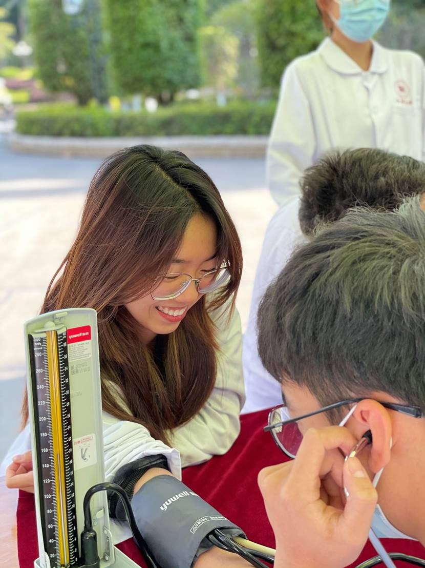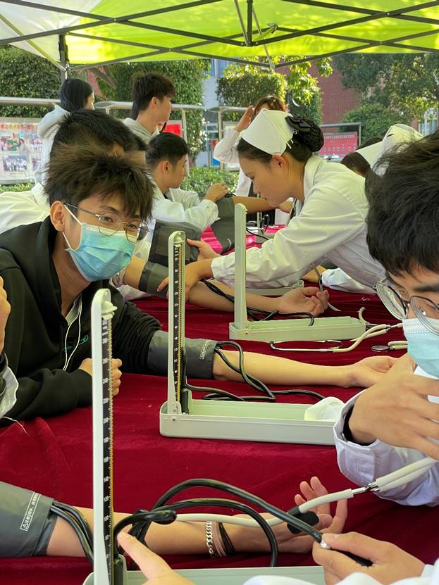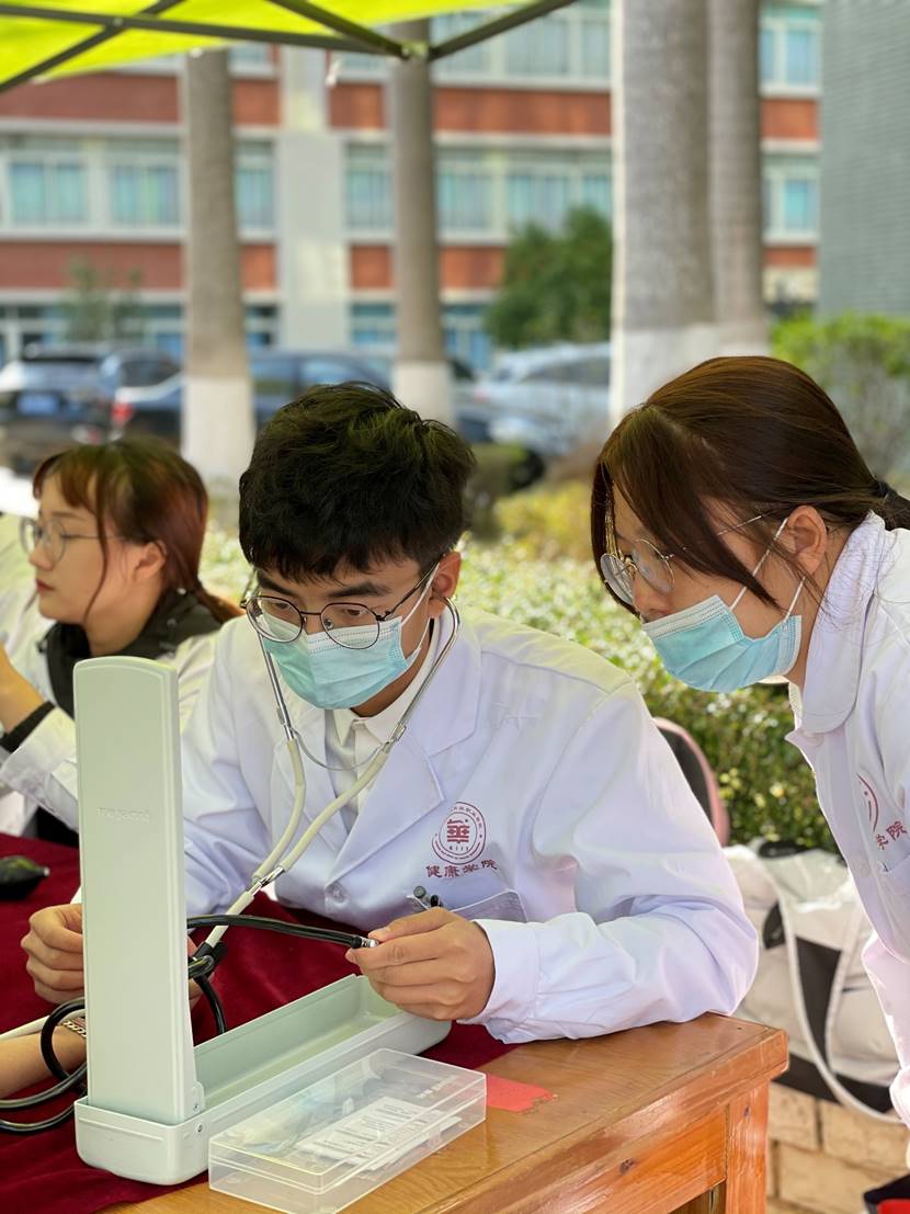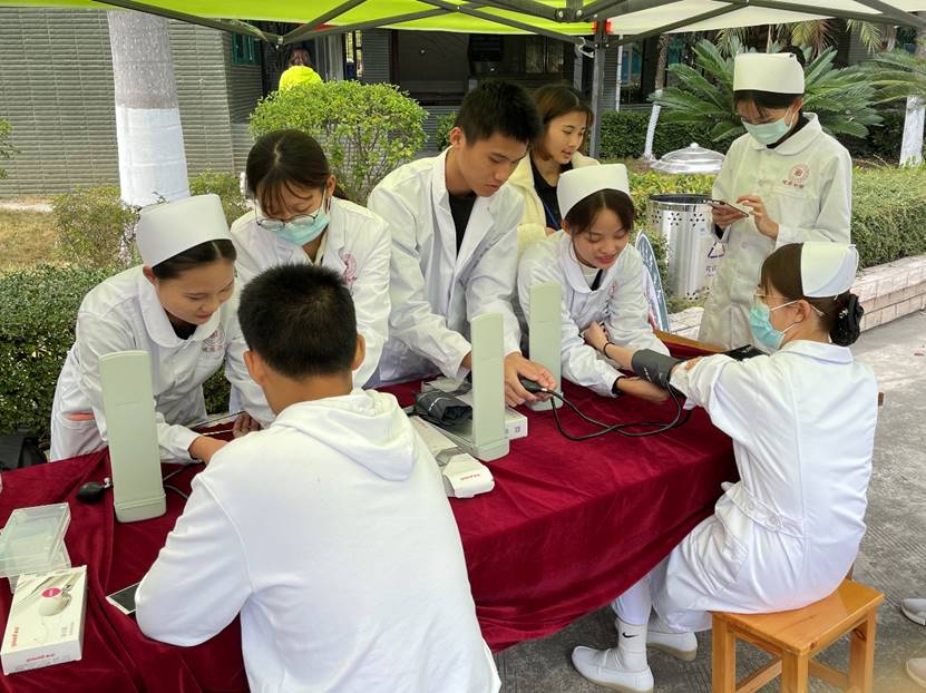 參加義診的同學(xué)們幫同學(xué)量血壓