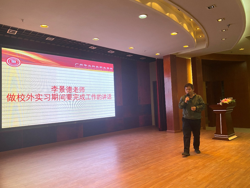 接下來由李景德老師為大家進(jìn)行校外實(shí)習(xí)期間要完成工作的講話,作為一名資深的就業(yè)老師,李老師帶來的講話給在座的各位帶來寶貴的經(jīng)驗(yàn),相信19級學(xué)子們能在校外闖出一片屬于自己的天地!
