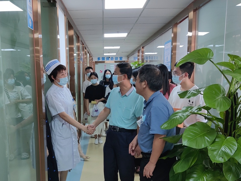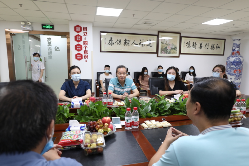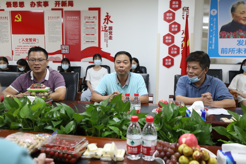 思念如綠葉,桂香滿心房。2020年9月17日,為進一步加強校醫(yī)合作,深化產(chǎn)教融合,中秋來臨之際廣州華立科技職業(yè)健康學院院長雷毅雄、廣州華立科技職業(yè)學院校外教學科科長韋建林、校外教學副主任李景德、廣州華立科技職業(yè)學院健康學院護理系楊鵬老師、校外干事鄧健坤一行到廣東藥科大學附屬第三醫(yī)院看望2019級跟崗實習的30位學生,并深入了解她們在校外的學習、工作情況。