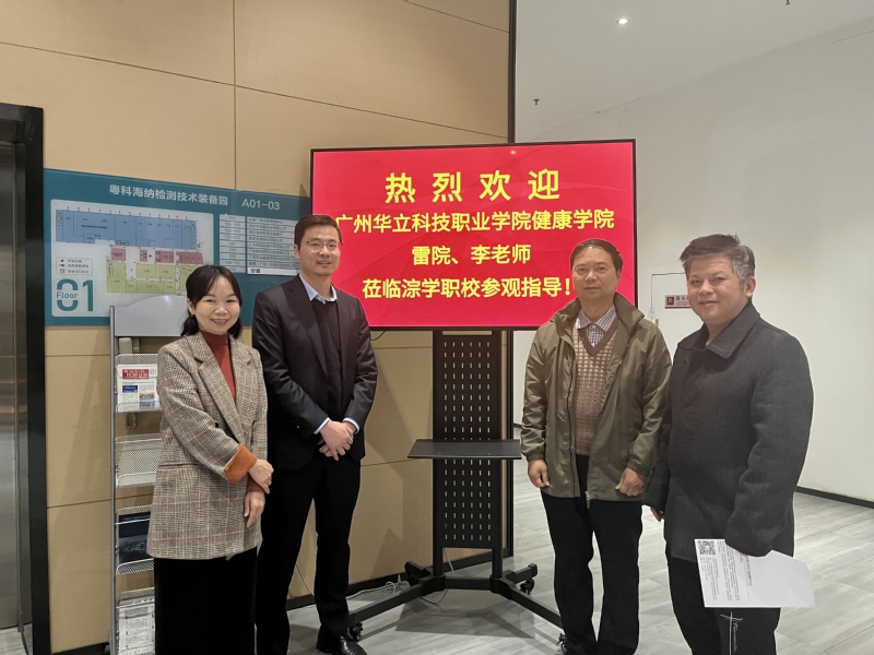 2022年1月13日,廣州華立科技職業(yè)學(xué)院健康學(xué)院院長雷毅雄教授、校外教學(xué)副主任李景德一行前往廣州淙學(xué)檢測企業(yè)管理有限公司洽談培訓(xùn)項(xiàng)目。