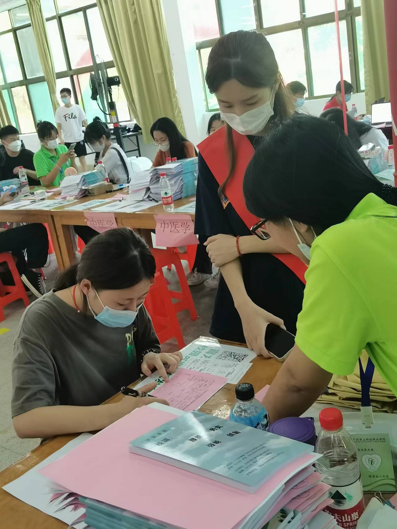 由于今年新生多,幾乎是在校生的三倍,健康學(xué)院的每一位師哥師姐都積極主動投入到迎新的志愿服務(wù)中!只見他們個(gè)個(gè)精神抖擻,著裝整齊,盡管天氣炎熱,汗水濕透了衣衫,臉也曬得通紅,然而他們始終微笑著熱情不減,為師弟師妹辦手續(xù),搬行李……盡管人很多,但工作有條不紊,忙而不亂,充分展現(xiàn)了醫(yī)學(xué)生的嚴(yán)謹(jǐn),勤奮,勇敢與擔(dān)當(dāng)!師哥師姐志愿者們?yōu)閹煹軒熋脴淞⒘肆己玫陌駱樱?/span>