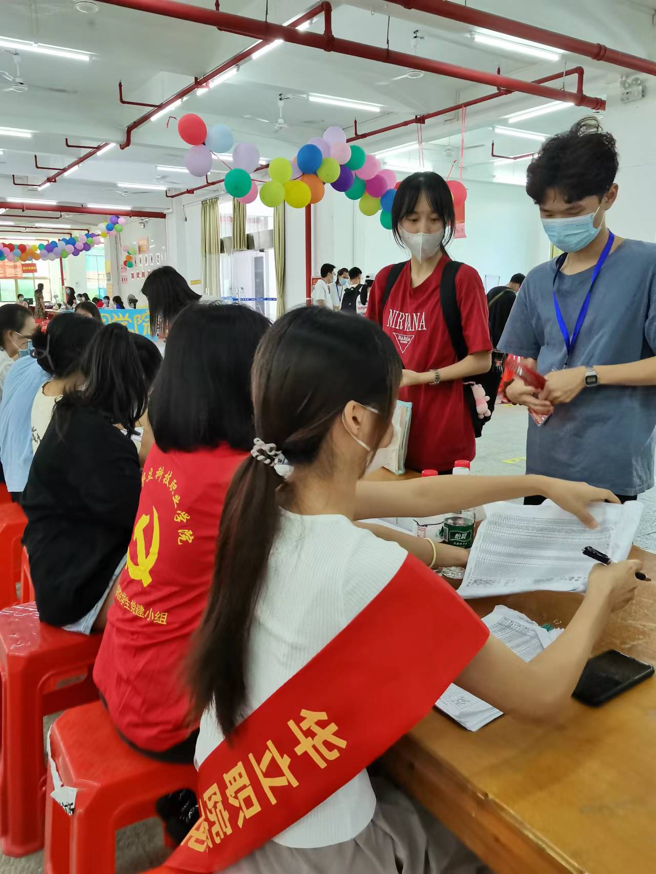 今天,廣州華立科技職業(yè)學(xué)院張燈結(jié)彩,彩旗飄飄,熱鬧非凡,2022級新生入學(xué)啦!為了迎接新同學(xué)的到來,健康學(xué)院全體師生齊動員,學(xué)工辦忙得不亦樂乎,繪海報(bào),拉橫幅,場地布置整齊而溫馨!