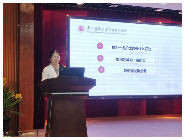 陳彩青副主任護(hù)師主要以自身的工作經(jīng)歷和晉升的經(jīng)歷啟發(fā)同學(xué)們。