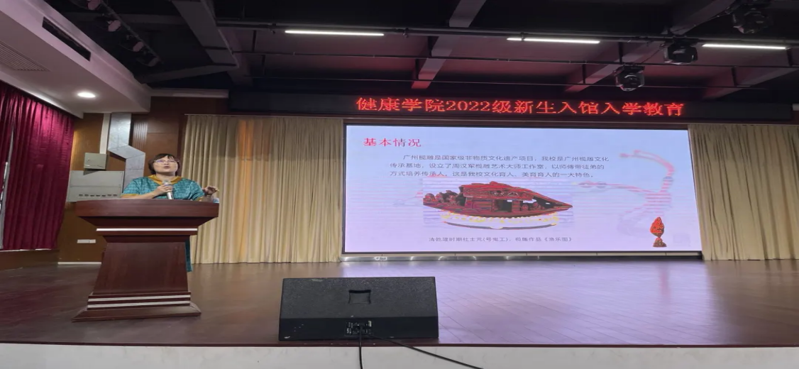 馬俊常務(wù)副校長向新生介紹了健康學(xué)院的特色以及師資力量,鼓勵(lì)同學(xué)們要把握學(xué)習(xí)專業(yè)知識(shí)的機(jī)會(huì),接著向同學(xué)們介紹了廣東省傳統(tǒng)欖雕工藝品的起源以及傳承,欖雕的技藝需要我們年青的一代去傳承,希望對欖雕有興趣的同學(xué)可以加入欖雕傳承人周漢軍先生的工作室觀賞、學(xué)習(xí)。