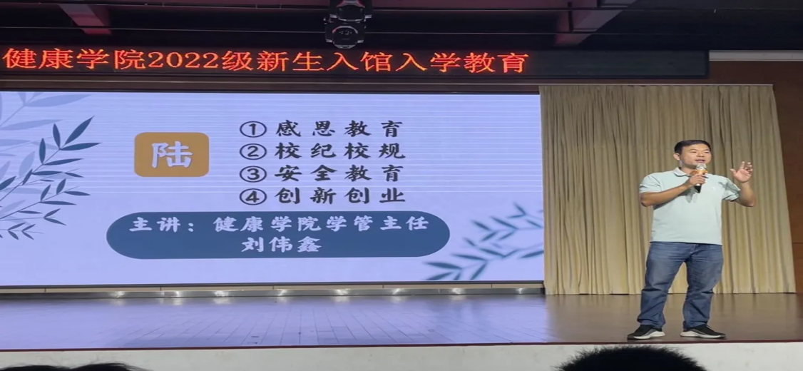 為引導(dǎo)新生堅(jiān)定理想信念、樹立遠(yuǎn)大理想,盡快了解新生活、適應(yīng)新環(huán)境、轉(zhuǎn)變新角色,明確學(xué)習(xí)目標(biāo)、合理規(guī)劃大學(xué)生活,構(gòu)建和諧溫馨的同學(xué)關(guān)系,營造健康向上的校園文化氛圍,2022年9月6日健康學(xué)院、中醫(yī)藥學(xué)院開展專業(yè)認(rèn)知入學(xué)教育