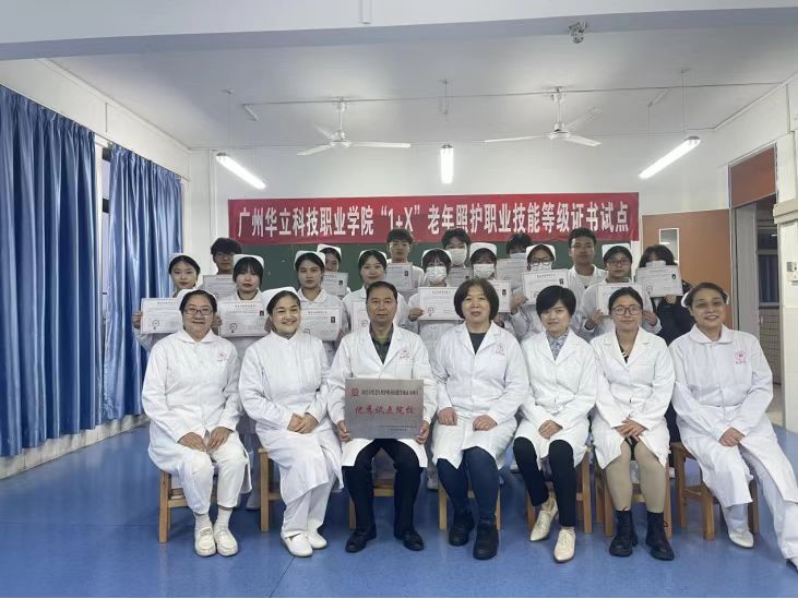廣州華立科技職業(yè)學(xué)院健康學(xué)院為貫徹落實(shí)國(guó)務(wù)院《國(guó)家職業(yè)教育改革實(shí)施方案》及教育部等四部委《關(guān)于在院校實(shí)施“學(xué)歷證書(shū)+若干職業(yè)技能等級(jí)證書(shū)”制度試點(diǎn)方案》等文件的要求,積極推進(jìn)“1+X”老年照護(hù)技能等級(jí)證書(shū)試點(diǎn)工作。我院在依托專(zhuān)業(yè)群(護(hù)理、健康管理、康復(fù)治療技術(shù))建設(shè)的基礎(chǔ)上,積極探索“書(shū)證融通”課程體系搭建,結(jié)合“崗課賽證”要求重構(gòu)教學(xué)內(nèi)容,大膽實(shí)施課堂改革,2022年在面對(duì)“疫情”等不利條件下,組織在校生183人參加考試,通過(guò)率達(dá)95%以上,高效且圓滿的完成了第一屆“老年照護(hù)職業(yè)技能(初級(jí))等級(jí)證書(shū)”試點(diǎn)考證工作,鑒于在師資建設(shè)、課程改革與考證組織等方面的優(yōu)秀表現(xiàn),2023年3月,教育部“1+X”證書(shū)機(jī)構(gòu)北京中福長(zhǎng)者文化科技有限公司經(jīng)考核后授予我?!皟?yōu)秀試點(diǎn)院?!狈Q(chēng)號(hào),健康學(xué)院雷毅雄院長(zhǎng)及相關(guān)老師出席授匾儀式,同時(shí)給通過(guò)考試的同學(xué)頒發(fā)證書(shū)。
