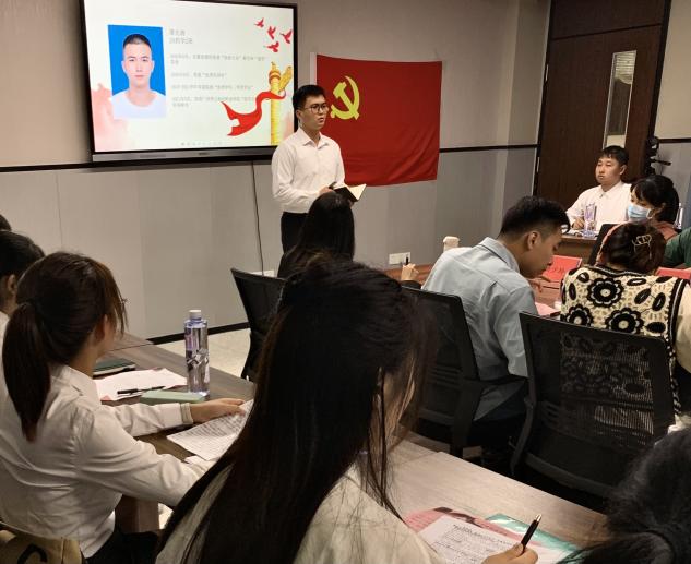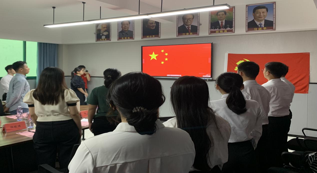 會議開始前,劉偉鑫同志帶領大家進行第一議題學習。鄭潔儀同志首先向各參會人員報告了出席本次會議的人員情況和會議程序,隨后,全體成員起立奏唱國歌,在雄渾莊嚴的旋律中,大會正式開始。緊接著,發(fā)展對象依次向黨組織匯報一年考察期內(nèi)的個人學習成長情況,并表明入黨動機和入黨態(tài)度。發(fā)展對象們表示在過去一年里自身的黨性修養(yǎng)以及學習能力、工作能力提升了很多,雖然自身尚存在不足和缺點,但一定會以黨員的標準嚴格地要求自我,不僅要從思想上入黨,更要從行動上入黨。