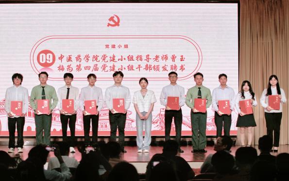 緊接著,進行頒獎儀式和聘書頒發(fā)儀式。中醫(yī)藥學院直屬黨支部副書記徐劍輝同志為在過去一年工作中涌現(xiàn)出來的優(yōu)秀學生頒發(fā)“工作積極分子”,鼓勵黨建小組成員今后繼續(xù)保持優(yōu)良工作作風,在工作學習中再創(chuàng)輝煌;曾玉梅老師為上一屆的學生干部頒發(fā)聘書,為學生干部過去一年的辛勤付出畫上圓滿的句號。