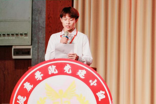 隨后,健康/中醫(yī)藥學院第四屆黨建小組部長覃金鳳同學代表發(fā)言。她對上年度的黨建小組工作進行了總結并提出了兩個希望。一是希望新一屆的干部們能夠攜手共進,齊心協(xié)力,秉持全心全意為同學們服務的宗旨,將黨建小組做大做強,在推動學院的黨建工作再上一個新的臺階。二是希望師弟師妹們永遠熱忱,遇強則強,永不放棄,在工作中有所收獲、有所成長。