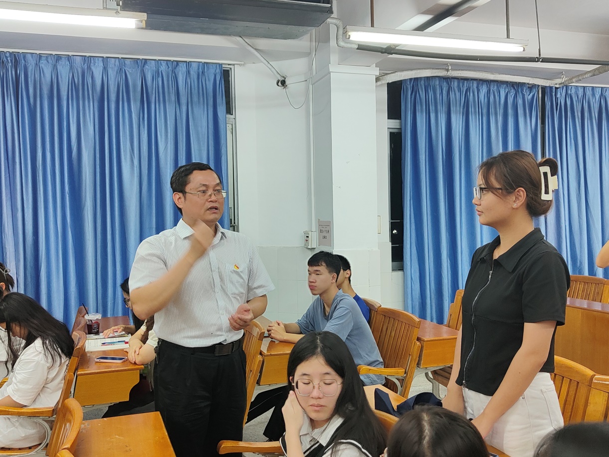 課堂即將結(jié)束時(shí),孟允煌書(shū)記還走進(jìn)同學(xué)們中間,與學(xué)生們進(jìn)行互動(dòng)。