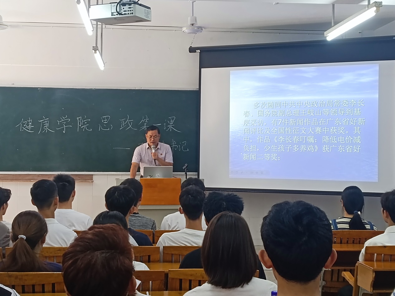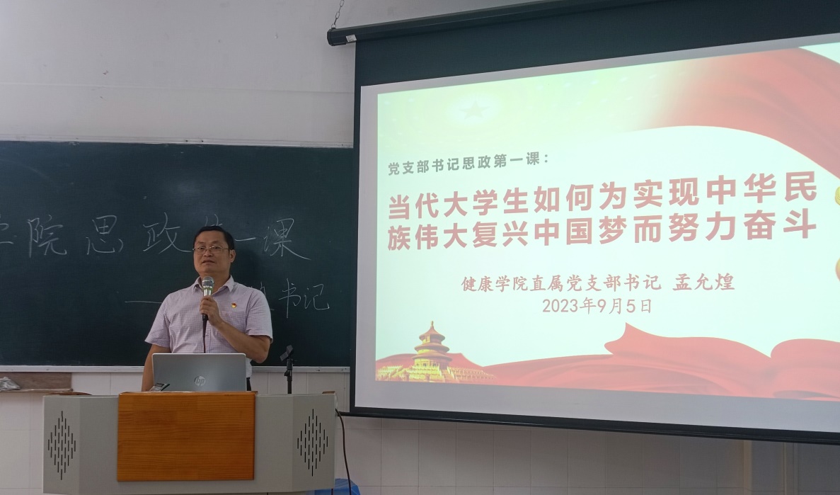 根據(jù)2023級新生入學(xué)教育工作安排,2023年9月5日下午,健康學(xué)院直屬黨支部在西2-201教室,為健康學(xué)院23級健康管理、口腔醫(yī)學(xué)技術(shù)和康復(fù)治療技術(shù)專業(yè)的學(xué)生代表和黨建小組成員組織一堂別開生面的思政第一課。黨支部書記孟允煌以《當(dāng)代大學(xué)生如何為實現(xiàn)中華民族偉大復(fù)興中國夢而努力奮斗》為主題,鼓勵同學(xué)們刻苦學(xué)習(xí)、勇于實踐、艱苦奮斗、與時俱進、開拓創(chuàng)新,用自己勤勞的雙手收獲成功、托起自己的夢、托起中國夢。