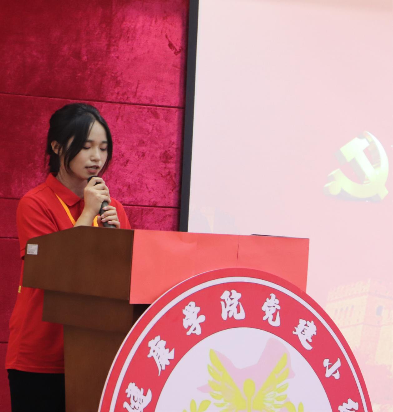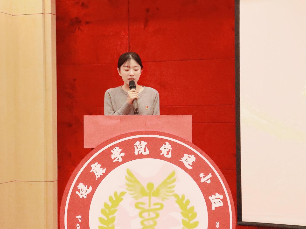 最后,健康學(xué)院直屬黨支部組織委員冼嘉祺老師發(fā)言,她希望同學(xué)們能夠堅定理想信念,讓理想信念成為心中的燈塔,做到虔誠而執(zhí)著。在勝利和順境時不驕傲不急躁,在困難和逆境時不消沉不動搖。