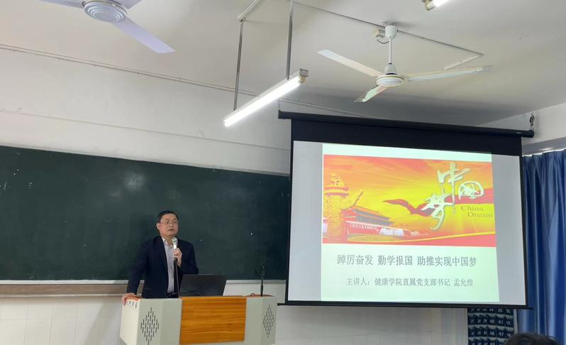 根據(jù)學(xué)校黨委工作安排,2024年3月18日中午,健康學(xué)院直屬黨支部在西2-203教室,為健康學(xué)院22級(jí)護(hù)理、健康管理、康復(fù)治療技術(shù)等專業(yè)的學(xué)生代表和黨建小組成員組織一堂別開(kāi)生面的思政課。黨支部書(shū)記孟允煌以《踔厲奮發(fā)勤學(xué)報(bào)國(guó)助推實(shí)現(xiàn)中國(guó)夢(mèng)》為主題,鼓勵(lì)同學(xué)們踔厲奮發(fā)、勤學(xué)報(bào)國(guó)、勇于實(shí)踐、艱苦奮斗、開(kāi)拓創(chuàng)新,用自己勤勞的雙手收獲成功、托起自己的夢(mèng)、助推實(shí)現(xiàn)中國(guó)夢(mèng)。