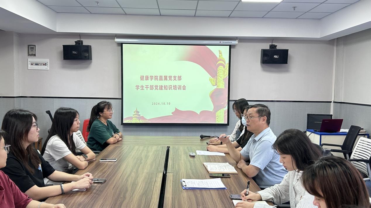 2024年10月10日中午,健康學(xué)院直屬黨支部在西2-608C黨員活動(dòng)室,為學(xué)院部分學(xué)生干部開(kāi)展黨建知識(shí)培訓(xùn)。支部書記孟允煌、組織員冼嘉祺、宣傳委員楊敬博、紀(jì)檢委員丁娟萍等參加了培訓(xùn)會(huì)。