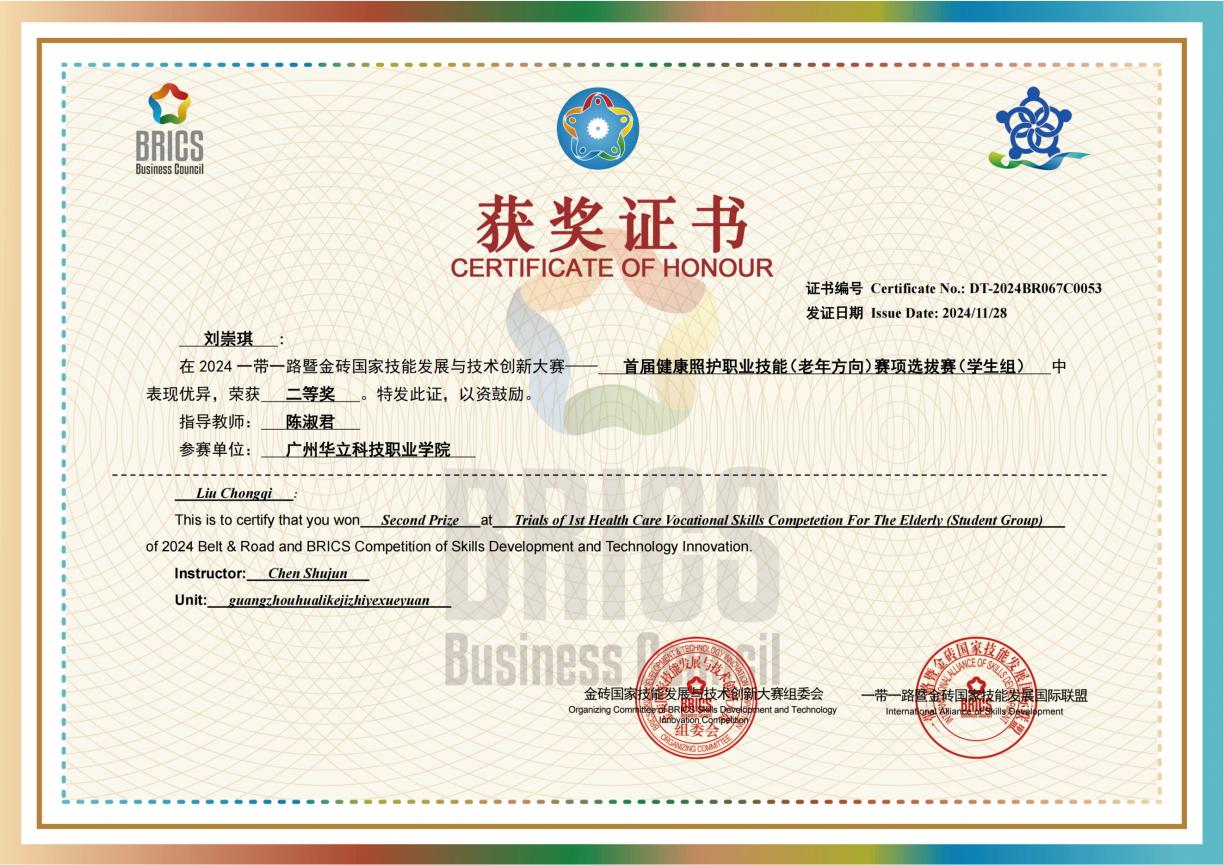 2024年11月27日至12月1日,“一帶一路”暨金磚國家技能發(fā)展與技術(shù)創(chuàng)新大賽——首屆健康照護職業(yè)技能(老年方向)賽項在山東聊城隆重舉辦。本次大賽接軌國際標(biāo)準(zhǔn),吸引了上海健康醫(yī)學(xué)院,邢臺醫(yī)學(xué)院,海南科技職業(yè)大學(xué),長沙衛(wèi)生職業(yè)學(xué)院,蘇州衛(wèi)生職業(yè)技術(shù)學(xué)院等來自全國的多所本、專科層次的學(xué)校參與,共計超過300名學(xué)生同場競技。