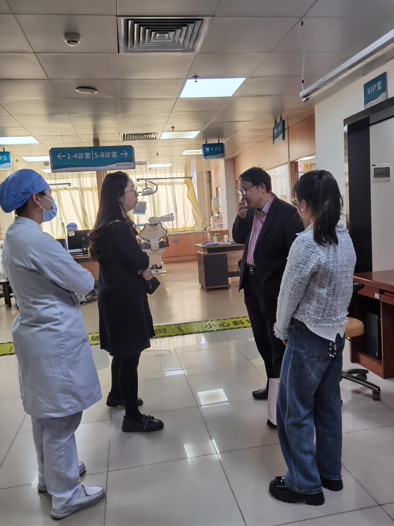 參觀結(jié)束后,我們又同口腔科趙主任,護(hù)士長(zhǎng)就人才培養(yǎng)、實(shí)踐教學(xué)等多個(gè)方面進(jìn)行了全面而細(xì)致的討論。學(xué)校方面提出了學(xué)生實(shí)習(xí)實(shí)訓(xùn)的需求和計(jì)劃,希望借助醫(yī)院的臨床平臺(tái),讓學(xué)生在真實(shí)的醫(yī)療環(huán)境中提升專(zhuān)業(yè)技能和職業(yè)素養(yǎng);醫(yī)院則表達(dá)了對(duì)專(zhuān)業(yè)人才的渴望,期待通過(guò)與學(xué)校的合作,實(shí)現(xiàn)人才的定向培養(yǎng)和精準(zhǔn)輸送,充實(shí)醫(yī)院的人才隊(duì)伍。