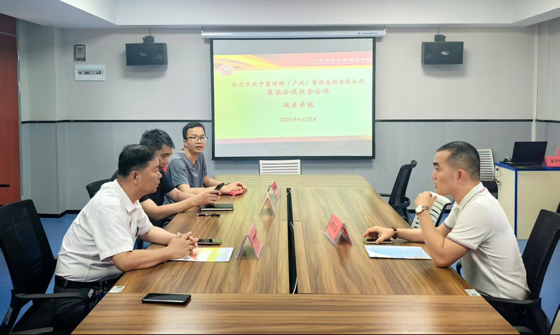 4 月 25 日上午,中康國?。◤V州)管理咨詢有限公司梅依賢總經(jīng)理我校健康學(xué)院,就校企合作展開洽談,健康學(xué)院雷毅雄院長(zhǎng)、李國良副院長(zhǎng)等參加了會(huì)議。