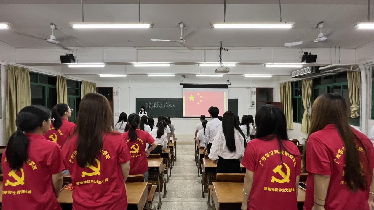 在雄偉的國歌聲中,領(lǐng)導(dǎo)嘉賓與健康學(xué)院黨建小組全體成員肅立注目,齊聲高唱《義勇軍進(jìn)行曲》,激昂的旋律回蕩會場,見證著在場每一名黨員堅定的政治信仰,展現(xiàn)了新時代黨務(wù)工作者勠力同心、奮發(fā)進(jìn)取的精神氣象。