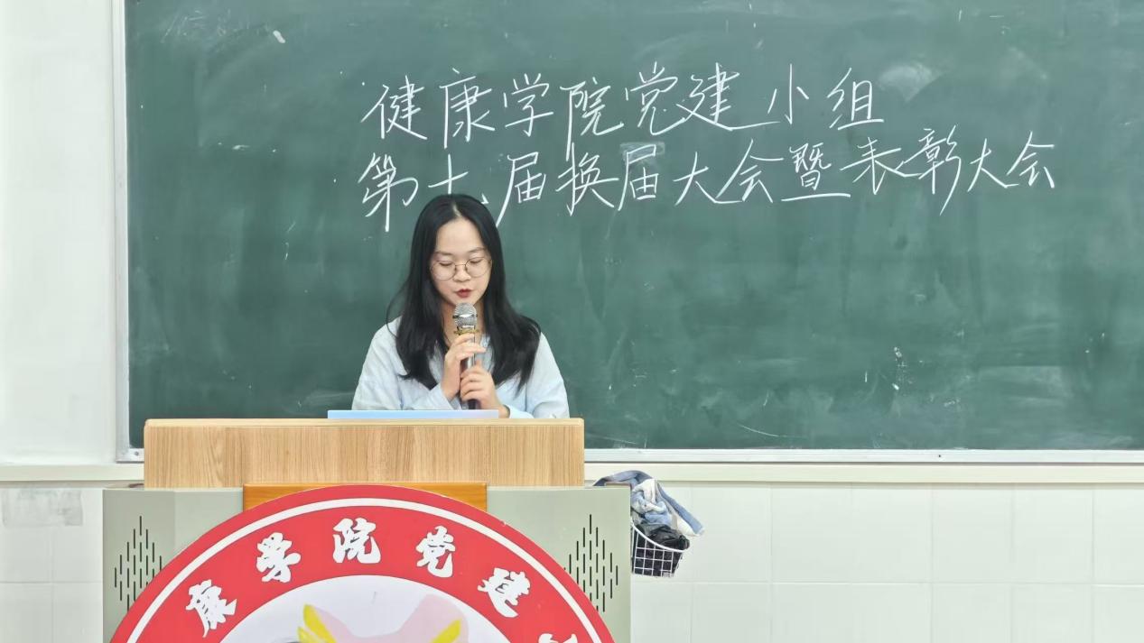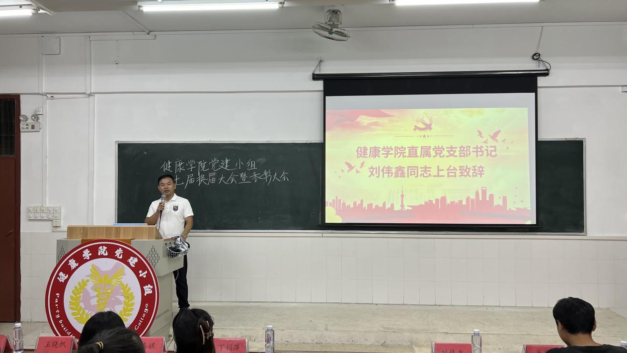 健康學(xué)院直屬黨支部書記劉偉鑫同志上臺致辭