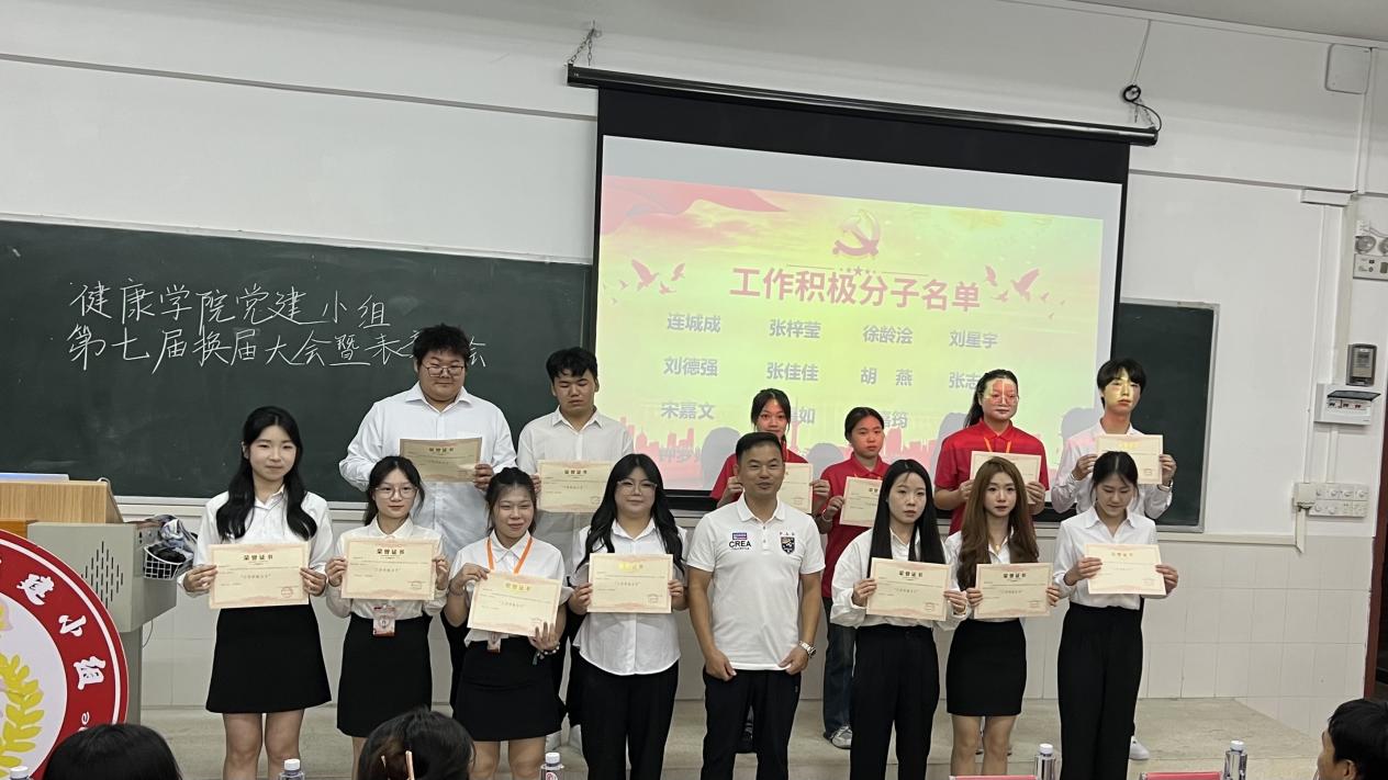 健康學(xué)院直屬黨支部書記劉偉鑫同志頒獎并合影留念
