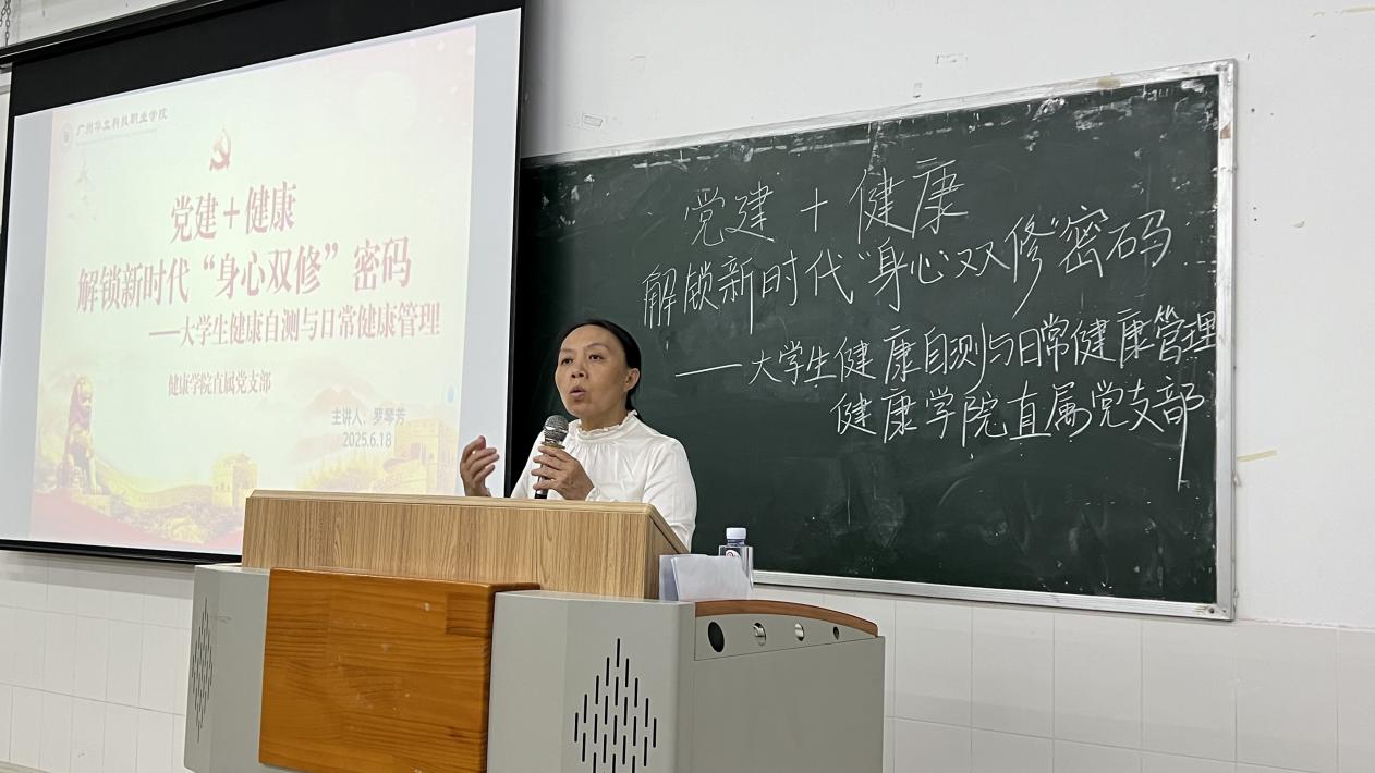 為深入貫徹落實(shí)黨的二十大精神,結(jié)合我院“一院一品牌”黨建工作與健康教育深度融合2025年6月18日,健康學(xué)院成功舉辦 “黨建 + 健康:解鎖新時(shí)代‘身心雙修’密碼” 主題講座。本次講座特邀健康學(xué)院老師羅琴芳博士擔(dān)任主講,講座圍繞“黨建賦能健康中國戰(zhàn)略”和“黨員先鋒作用與身心健康協(xié)同發(fā)展”兩大核心議題展開,通過理論闡釋、案例分析與互動(dòng)實(shí)踐相結(jié)合的方式,為在場師生呈現(xiàn)了一場思想深刻、內(nèi)容豐富的黨建與健康融合教育知識(shí)科普。