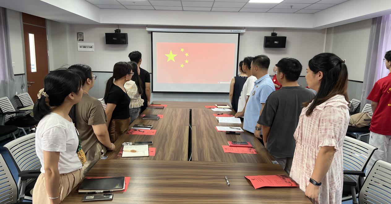 總結(jié)發(fā)言后,全體與會黨員起立,奏響《國際歌》,激昂的旋律再次堅定了大家的理想信念。最后,參會領(lǐng)導(dǎo)與本次轉(zhuǎn)正預(yù)備黨員廖煒鋒同志合影留念,大會在莊重而熱烈的氣氛中圓滿落幕。