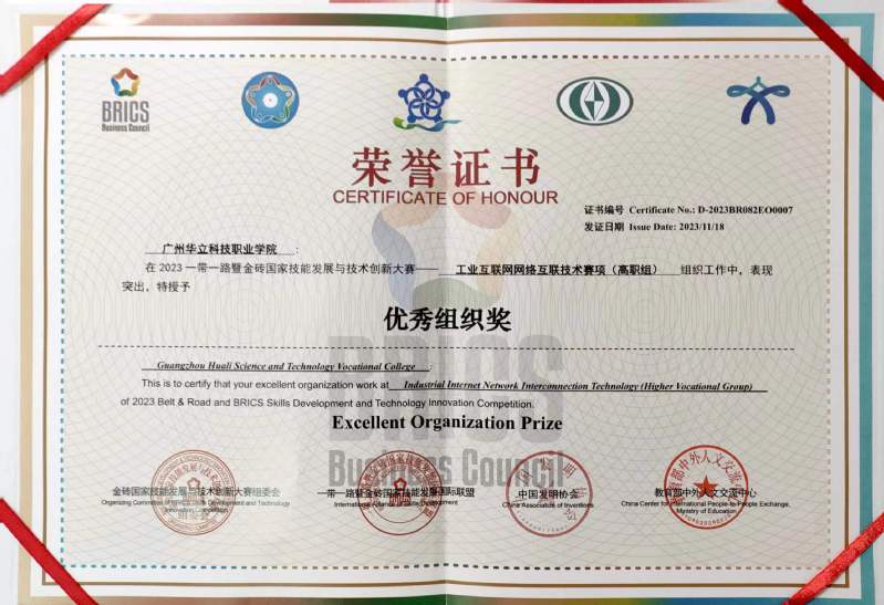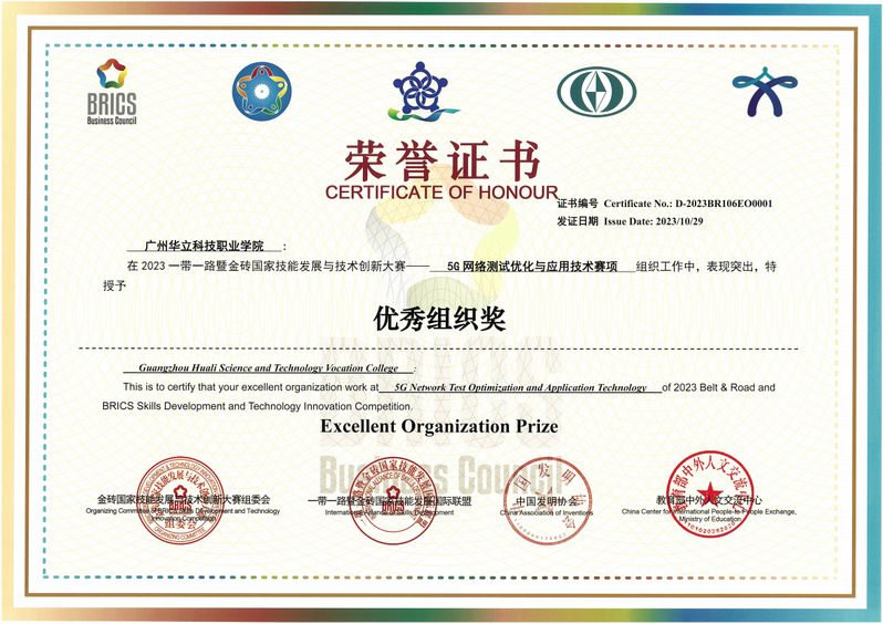 2023一帶一路暨金磚國(guó)家技能發(fā)展與技術(shù)創(chuàng)新大賽-5G賽項(xiàng)優(yōu)秀組織獎(jiǎng)