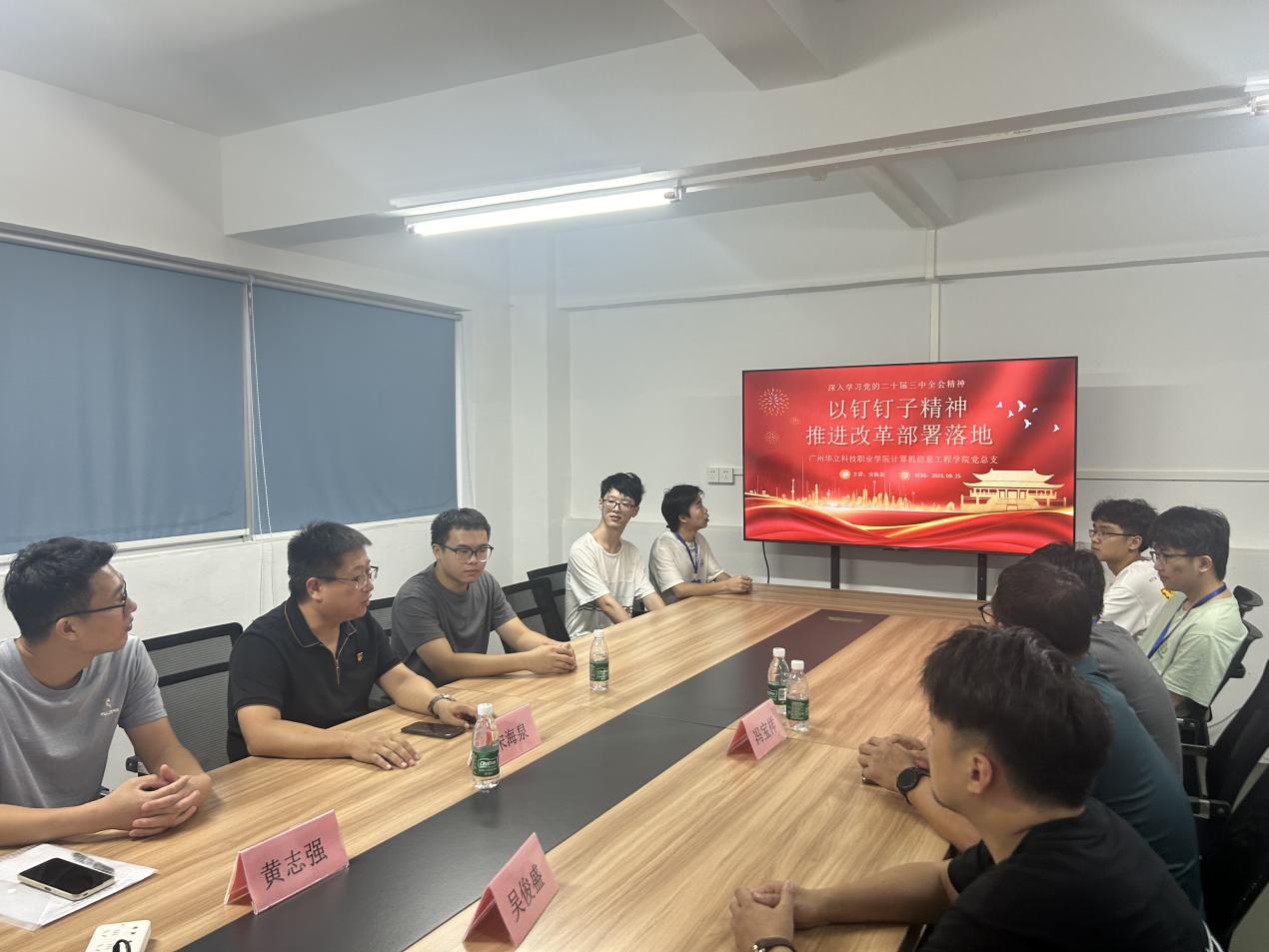 為深入學(xué)習(xí)貫徹黨的二十屆三中全會精神,加強黨建共建深度融合,2024年9月25日下午,計算機信息工程學(xué)院黨總支書記宋海泉帶領(lǐng)教師黨支部書記黃志強等一行到學(xué)院黨建共建基地——廣州粵嵌通信科技股份有限公司為我院校外教學(xué)學(xué)生開展以“深入學(xué)習(xí)黨的二十屆三中全會精神—以釘釘子精神推進改革部署落地”為主題的宣講活動。