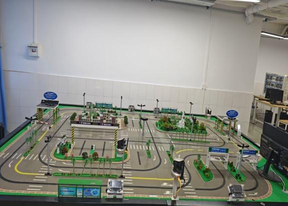 (圖4 基礎(chǔ)應(yīng)用實訓室) (圖5 智慧物聯(lián)網(wǎng)沙盤)