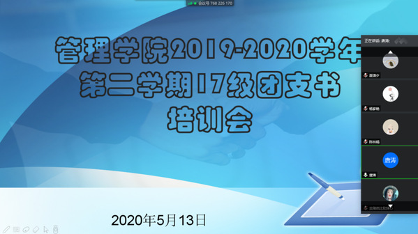 我院于2020年5月13日晚上19點在騰訊會議開展了管理學院2019-2020學年第二學期17級團支書培訓會。管理學院學生管理唐濤副主任、管理學院團總支陳媛書記、學生會主席黃天龍同學、管理學院團總支組織部負責人以及17級各班團支書出席了本次培訓會議。