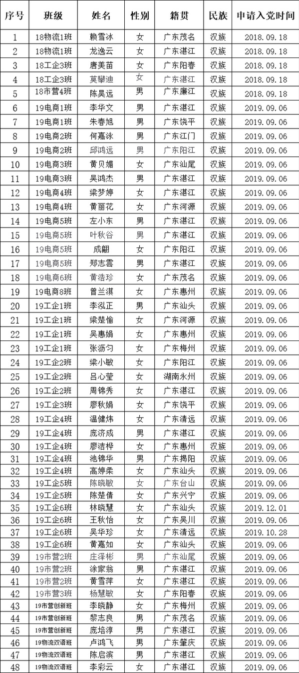 根據(jù)校共青團(tuán)委員會下發(fā)《華立職院團(tuán)字〔2020〕2號關(guān)于做好2019-2020學(xué)年度第二次“團(tuán)推優(yōu)”的通知》,結(jié)合學(xué)院實(shí)際,我院團(tuán)總支于2020年5月10日-11日開展2019-2020學(xué)年度第二次“團(tuán)推優(yōu)”的工作。經(jīng)個(gè)人申請,由各班團(tuán)支部通過團(tuán)員大會推選,管理學(xué)院團(tuán)總支審核,校團(tuán)委審批。我學(xué)院擬將賴雪冰等48位同志為2019-2020學(xué)年度第二次團(tuán)推優(yōu)對象,現(xiàn)將團(tuán)推優(yōu)對象的名單公示如下(具體名單見下表):