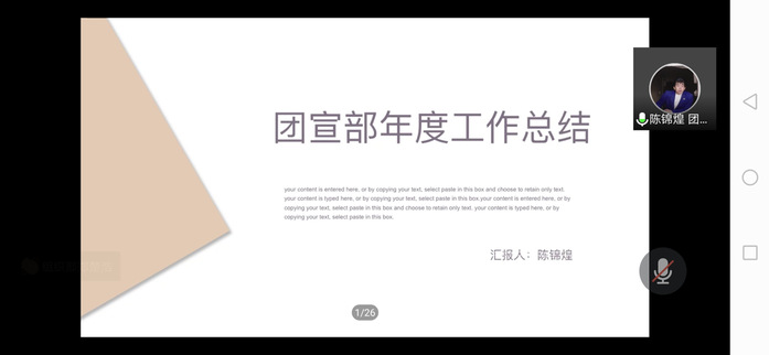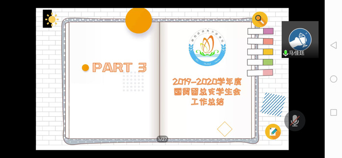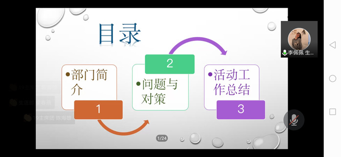 接下來,由十四個(gè)部門依次對本學(xué)年做出工作總結(jié)。他們介紹了部門職能、本學(xué)期工作回顧、工作成果和展望未來,同時(shí)他們也指出了部門在接下來需要改進(jìn)之處與對部門的美好祝愿。希望新一屆部門負(fù)責(zé)人可以青出于藍(lán)而勝于藍(lán)!