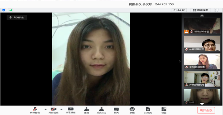 競選者按照順序依次打開攝像頭進行演講,他們分別就各自的基本信息、競選職位、競選原因及未來一年的工作規(guī)劃進行了簡短而精彩的演講。在短短幾分鐘內給老師和主席團的成員留下了深刻的印象。