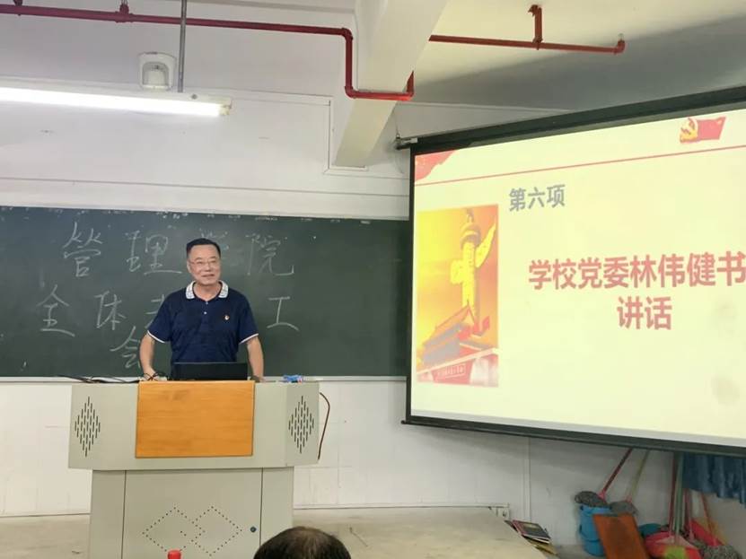 會議第六項,學校黨委林偉健書記總結發(fā)言,他肯定了管理學院全體教職工對學院黨建工作的付出和努力,展現(xiàn)了我們的新時代官員精神,并對管理學院教職工提出以下幾點要求: