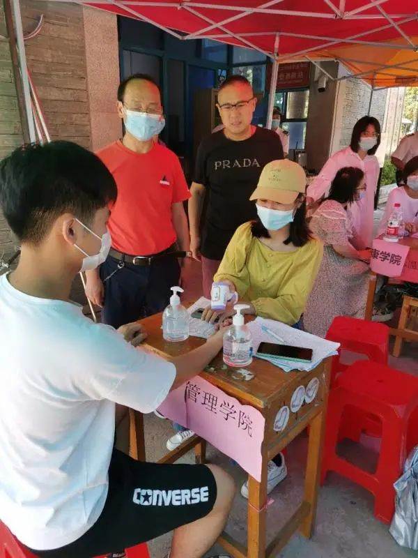 炎炎夏日、驕陽似火,管理學院學生黨員勇于奉獻、敢為人先,積極參加迎接18級學生返校志愿工作,充分體現(xiàn)了共產(chǎn)黨員的擔當精神。校門口前實施“一測二核三查四通過”,測量體溫、核驗身份、查驗健康碼、符合條件的學生方可通過,整個流程分工明確,順暢有序。