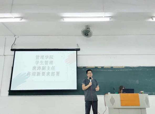 緊接著,由管理學(xué)院學(xué)生管理唐濤副主任對(duì)本次迎新工作做出要求:他希望全體迎新工作人員要以熱情的工作態(tài)度對(duì)待新生及家長(zhǎng),要充分體現(xiàn)管理學(xué)院對(duì)新生的人文關(guān)懷,并強(qiáng)調(diào)在疫情防控期間,各工作人員要做好個(gè)人防護(hù),在保證個(gè)人以及新生安全情況下開(kāi)展工作。