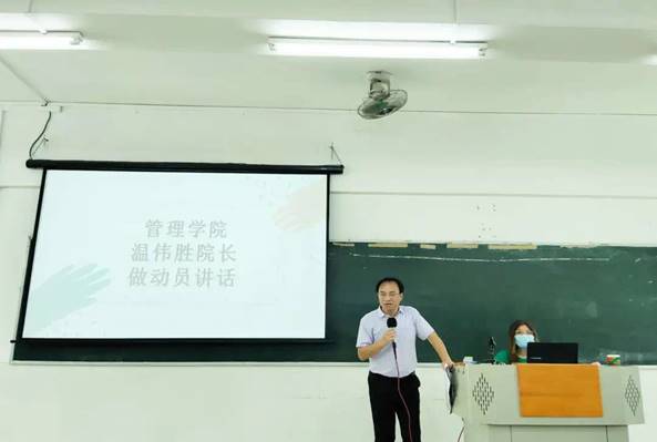 會(huì)議開(kāi)始前管理學(xué)院溫偉勝院長(zhǎng)對(duì)此次動(dòng)員活動(dòng)致辭,他說(shuō)到:希望同學(xué)們?cè)谟逻^(guò)程中體現(xiàn)出管院的風(fēng)采和態(tài)度去迎新,讓新一屆的師弟師妹們感受到新學(xué)校的有愛(ài)氛圍,把管院此次迎新工作做到最好,為新生展示我們的熱情。