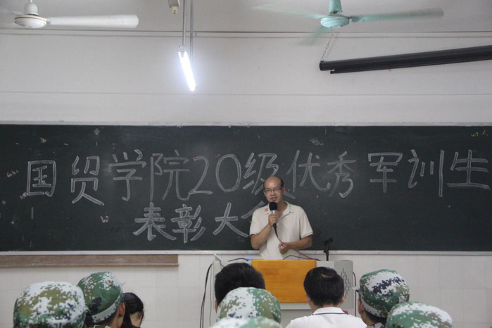 接著,鄭慶國老師上臺講話,表示祝賀和充分肯定了大家在軍訓期間取得的優(yōu)異成果。還提到大家的這個榮譽稱號來之不易,更要倍感珍惜,也是大家進入大學以來的第一份榮譽證書,更加有象征性和回憶性的意義。并提醒大家要將在軍訓中養(yǎng)成的良好品格、作風和紀律延續(xù)到今后的學習、生活中去。