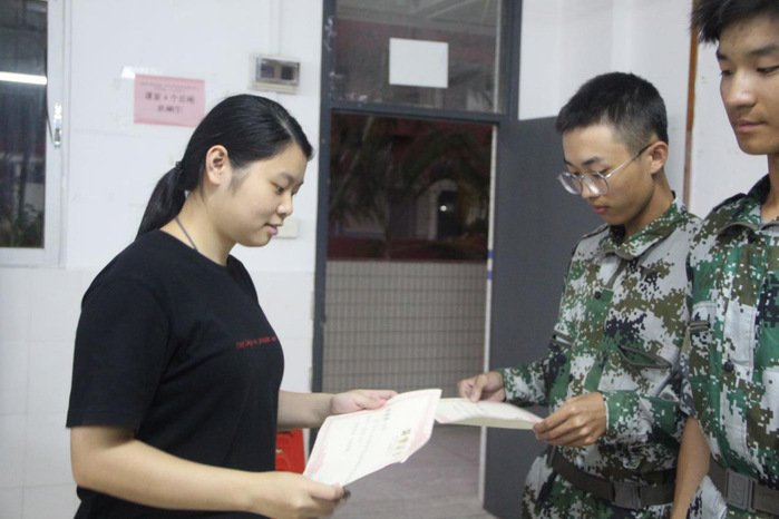 國貿學院20級實習輔導員盧韻茵老師為獲得優(yōu)秀軍訓生頒發(fā)榮譽證書