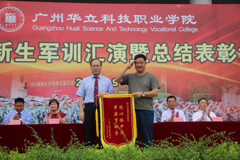 5.由教官代表將軍訓(xùn)團(tuán)旗交還給馬龍海執(zhí)行校長(zhǎng),并向承訓(xùn)部隊(duì)贈(zèng)送錦旗。到此宣布20級(jí)新生軍訓(xùn)成果匯報(bào)表演暨總結(jié)表彰大會(huì)圓滿結(jié)束。同時(shí)他希望同學(xué)們?cè)诮窈蟮膶W(xué)習(xí)生活中,繼續(xù)發(fā)揚(yáng)軍訓(xùn)精神,不斷鞏固訓(xùn)練成果讓這種精神充滿整個(gè)華立園。
