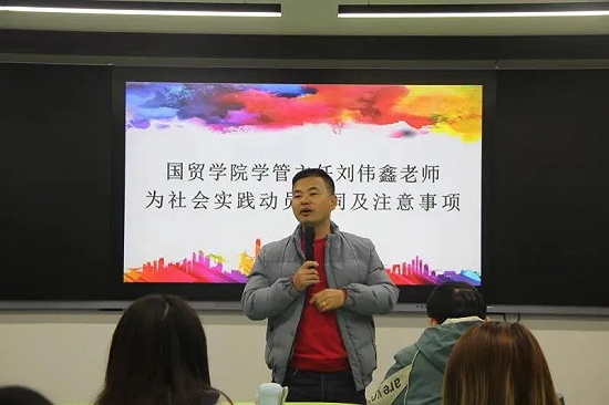 會(huì)議開(kāi)始,由國(guó)貿(mào)學(xué)院學(xué)管主任劉偉鑫老師為本次大學(xué)生社會(huì)實(shí)踐活動(dòng)做動(dòng)員和注意事項(xiàng)提了建議和要求,劉偉鑫老師提醒同學(xué)們回母校寒訪一定要進(jìn)行前期構(gòu)思,掌握好回訪流程與路線,并特別提醒同學(xué)們?cè)诤L母校的過(guò)程中要注要人身安全和防疫措施問(wèn)題,同時(shí)預(yù)祝本次參與寒訪母校的同學(xué)們?nèi)〉脠A滿成功。