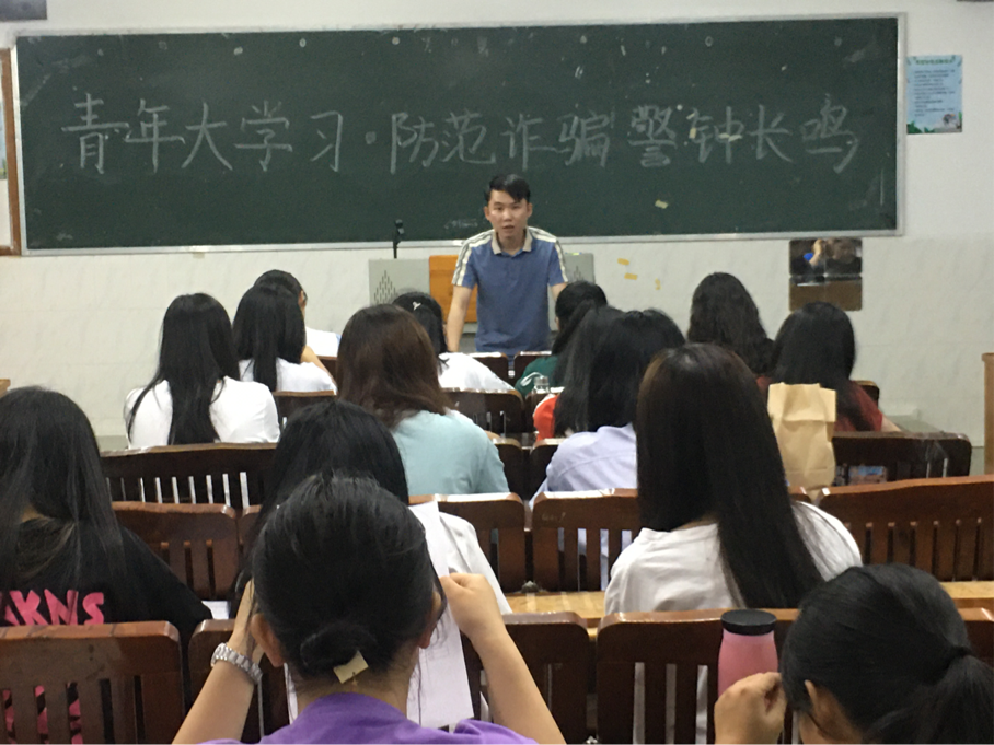 為了增強(qiáng)學(xué)生的安全防范意識(shí),謹(jǐn)防被詐騙,提高警惕學(xué)生的防詐騙與自我保護(hù)能力,切實(shí)保護(hù)學(xué)生財(cái)產(chǎn),人身免受侵害。國貿(mào)學(xué)院于2021年4月15日晚上7點(diǎn)在西一教學(xué)樓四樓各多媒體教室開展以“青年大學(xué)習(xí)--防范詐騙,警鐘長鳴”為主題的班會(huì),讓我們一起學(xué)習(xí)更多關(guān)于防詐騙安全措施。本次主題班會(huì)由20級輔導(dǎo)員鄭慶國老師主講。